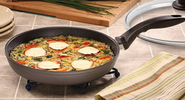 Для того чтобы омлет получился пышным, сковороды должна иметь стенки соответствующе высоты. Именно поэтому, в отличие от вариантов для приготовления яичницы, в этом случае идеально подойдут глубокие модели с небольшим расхождением стенок от дна.Чтобы сделать омлет более легким и диетическим, необходимо до минимума снизить количество масла, используемого в процессе его приготовления. Именно поэтому в категории сковород для омлета представлены изделия, оснащенные антипригарным покрытием. Его идеально гладкая структура вместе с цельнолитой основой чаши исключают вероятность появления зон перегрева.