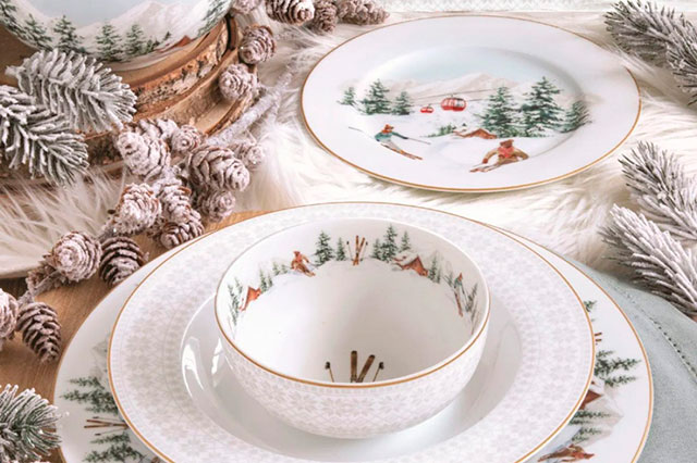 Коллекция фаянсовой посуды «Рождественская ель» от английского бренда Spode, коллекции от Décor De Table «Рождественский винтаж» и «Новогоднее чудо» из фарфора с Сантой, елочками и оленями будут смотреться на столе великолепно.