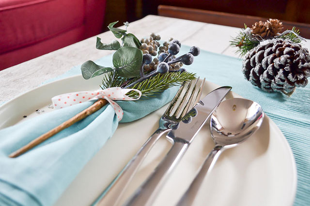 Дополнительно можно использовать плейсматы под тарелки, если это вам по вкусу.
