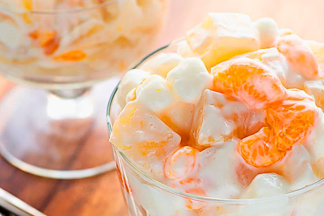 Не забудьте про сезонные фрукты – мандарины, ананасы, виноград и киви. Можно сделать порционные салаты из них и подать в красивых креманках.