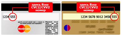 2) На странице авторизации введите Номер карты, Имя владельца карты, Срок действия карты и Верификационный номер карты (CVV2 для VISA или CVC2 для MasterCard). Все необходимые данные пропечатаны на самой карте! Верификационный номер карты - это три цифры, находящиеся на обратной стороне карты: