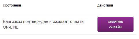 Оператор установит заказу статус "подтвержден" и покупатель сможет оплатить его на сайте, зайдя в личный кабинет и нажав на кнопку "оплатить онлайн".