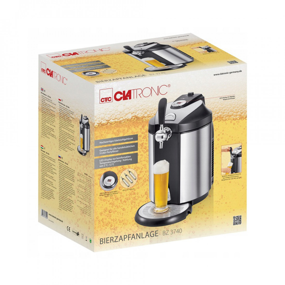 Диспенсер для пива, 5 л, пластик, черный, BZ 3740, CLATRONIC, Германия